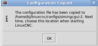 Ekkor a konfiguráció választó program felajánlja a mintafájlok bemásolását a saját “home” könyvtárunkba. És ez az egész beállítás lényege, a minta konfigban benne van minden, mi azt pár mozdulattal átmásoljuk a meglévő INI fájlba és kész is a műtét.